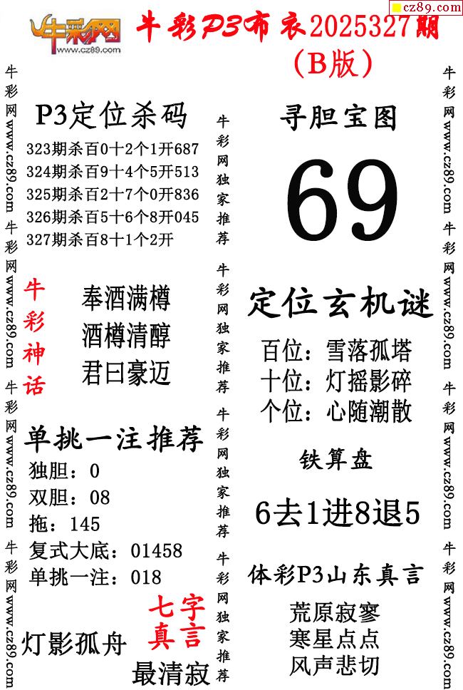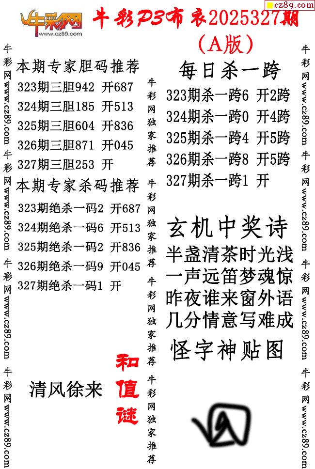 牛彩P3布衣25年327期AB版图谜(精华版)